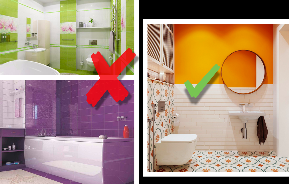 Сделать ванную яркой и не вызвать сомнительных ассоциаций - задача сложная, но выполнимая. В этой статье я собрал подборку неудачных цветовых решений для санузлов и делюсь полезными советами. Лимонный и желтый В санузле сочетание белого и лимонного вызывает сомнительные ассоциации и хочется скорее покинуть такое пространство. Насыщенный желтый цвет - ужасное решение для ванной комнаты. Но если изменить оттенок в сторону оранжевого, то результат будет совершенно другим и исчезнут все домыслы и недвусмысленные догадки. Лайм тоже цитрус Цитрусы создают атмосферу свежести, но часто их оттенки в отделке помещений работают наоборот. Лаймовые и яблочные цвета выглядят холодными и неуютными в ванных комнатах. Синий и фиолетовый Прекрасные цвета, но они меняют оттенок кожи человека. Внешне такой интерьер кажется интересным, но когда человек увидит на своей коже синие цветовые рефлексы, то вся радость пропадет. Такие оттенки нужно использовать дозировано и избегать глянцевых поверхностей (глянце