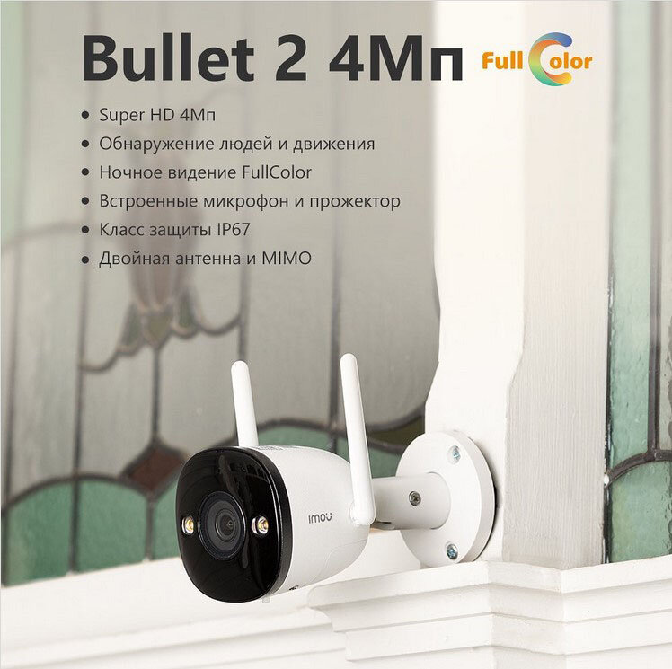 У вас наконец возникла потребность организовать видеонаблюдение на своей придомовой территории и вы затрудняетесь выбрать из богатого ассортимента представленных на рынке IP-камер? Обратите свое внимание на Imou Bullet 2 - линейку WiFi-камер потребительского класса. В предлагаемую серию входят такие модели, как Imou Bullet 2, Imou Bullet 2S и Imou Bullet 2E в модификациях разрешением FullHD и UltraHD. Все они относятся к категории уличных устройств, защищенных от воздействия пыли и влаги, что подтверждается сертификатом IP67. Диапазон допустимых температур окружающей среды от -30°С до 60°С говорит о возможности использования в любом регионе нашей страны южнее полярного круга. Одним из основных различий между устройствами является материал корпуса. Это металл и пластик у Imou Bullet 2, пластик у Imou Bullet 2E и металл у Imou Bullet 2S. Все три модели поддерживают технологию FullColor, которая за счет маломощной светодиодной подсветки теплого белого оттенка и высокой светочувствительно