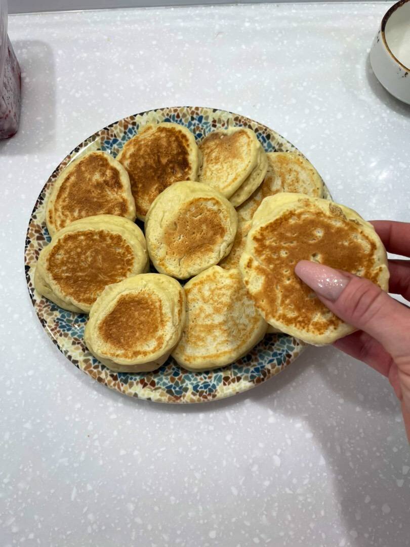 Панкейки=творожные оладушки в данном формате. Очень легкие и быстрые. Детки скушали целую тарелку блинков, которых из двух яиц получилось довольно много. Ингредиенты: яйца, молока, творога, муки, растительное масло для жарки, Разрыхлитель , cахар или сахарозаменитель Способ приготовления: Подготовить ингредиенты/ Соединить творог, яйца и в моем случае сахарозаменитель, но если вы не боитесь сахара, cмело кладите две столовые ложки. И всё пробейте блендером. До однородной массы. Влейте молоко и соедините, всыпьте муку. Хорошо вымешайте и всыпьте небольшую чайную ложку разрыхлителя. Перемешайте. Сковородки я смазала кокосовым маслом и жарила блинчики на огне чуть выше среднего по 4-5 минут с каждой стороны. Вот что получилось. Приятного аппетита.