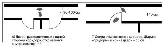 Если эргономика продумана грамотно, то даже маленькая квартира может стать комфортной и уютной для проживания! В этой статье дадим вам полезные советы по эргономике, поэтому применяйте их, чтобы вы смогли достичь большего уюта у себя дома. Начнем с прихожей. 1. Стоит рассчитать ширину. Зачастую в квартирах прихожая будет представлять из себя обычный коридор, и ширина его зависит от того, в какую сторону открываются межкомнатные двери. На картинке выше вы сможете увидеть советы - какой шириной должен обладать коридор. 2. Ни в коем случае не стоит в коридоре ставить много мебели. Чтобы раздеться и снять обувь нужно буквально несколько квадратных метров. Для того чтобы не биться локтями об мебель или стены, когда одеваетесь или наоборот, то расстояние между двумя стенами вы должны оставлять в запасе, оно должно составлять примерно 100-110 сантиметров. Помимо этого, если ваш коридор достаточно узок, то вам стоит, прежде всего, отказаться от громадных шкафов, а лучше отдать предпочтение к