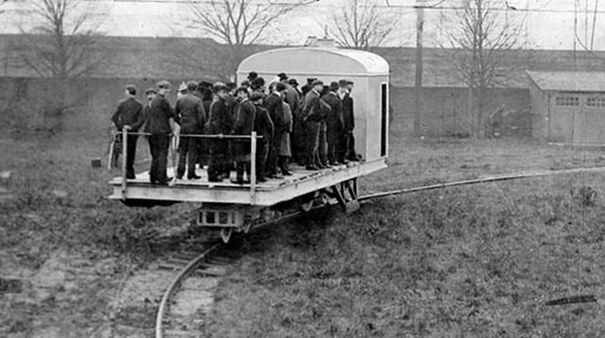 Переносной монорельс с человеком в роли "двигателя": идея XIX века