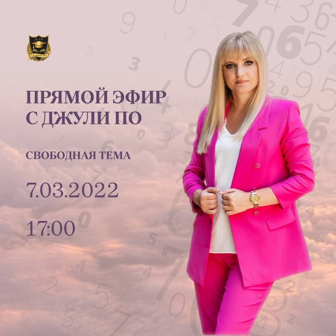 Дорогие друзья! 🌒 7 марта в 17:00 ведущий лектор международной Академии Нумерологии АЛЬВАСАР Джули По (@djuli_po.alvasar) проведет прямой эфир на свободную тему. Также напоминаем, что эфир абсолютно бесплатный 🔥 и будет транслироваться на площадках: 🔅 YouTube канал Джули По 🔅 Instagram @djuli_po.alvasar С нетерпением ждем нашей встречи в эфире. Обещаем, будет интересно!