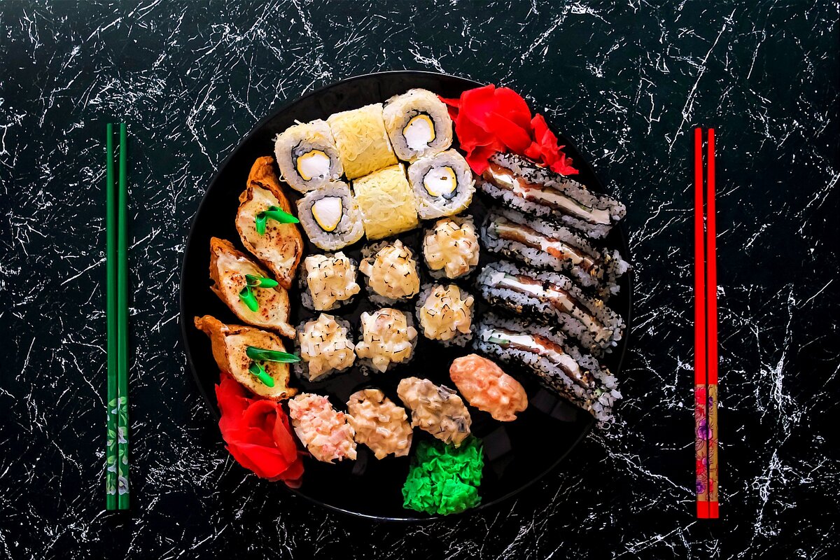 Роллы — одна из разновидностей суши в японской кухне, отличительной особенностью которой является скручивание при помощи бамбуковой циновки в цилиндрическую форму, с последующим разрезанием на дольки. Обычно роллы употребляют вместе с васаби, имбирём, макая в соевый соус. Википедия