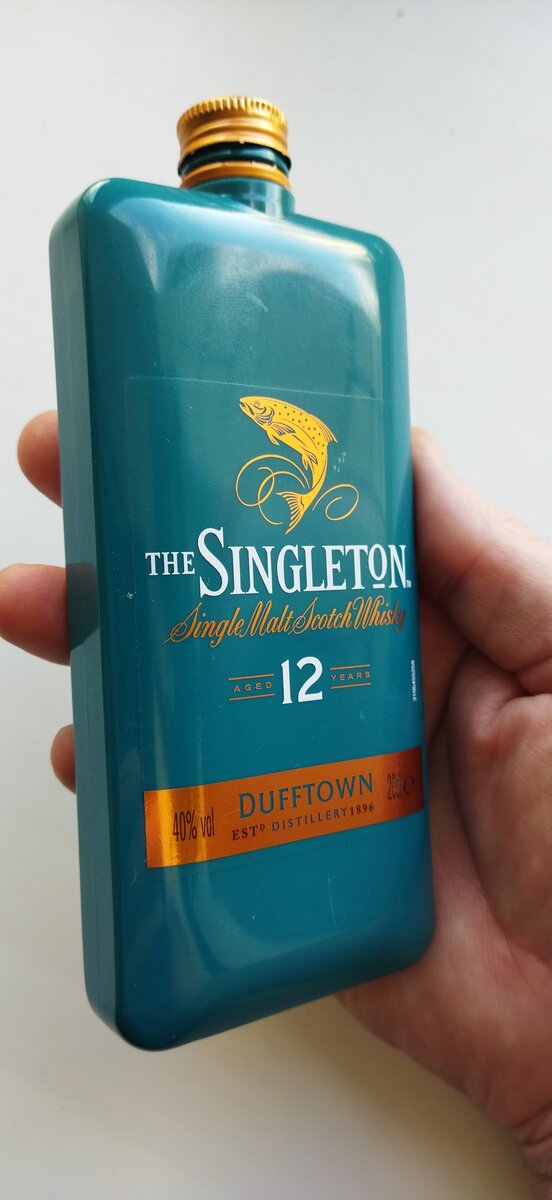 Фляжка-пробник Singleton of Dufftown 12 Y.O. Среди сообщества продвинутых вискиманьяков к синглмолту Singleton of Dufftown 12 Y.O. распространено довольно пренебрежительное отношение, как к напитку базовому, начального уровня. А следовательно, многие считают его незатейливым и простоватым скотчем, не заслуживающим внимания. Я, к сожалению или слава Богу, к этой населения так и не примкнул. Хотя к виски испытываю неподдельный интерес и почтение. Финансовые возможности, как и у большинства, не дают мне пока возможности ежедневно наслаждаться 15-летними и выше солодовыми whisky. Мой опыт пока ограничен блендами, базовыми NAC релизами и некоторыми двенадцатилетками. И вот наслушавшись виски-гуру, долго обходил Singleton of Dufftown 12 Y.O. стороной. Пока в одном из супермаркетов не попалась двухсотграммовая фляжка-пробник по цене, за которую его, попросту, не взять было бы непростительно. Вот и прикупил на пробу этого представителя шотландского региона Спейсайд. Все характеристики Single