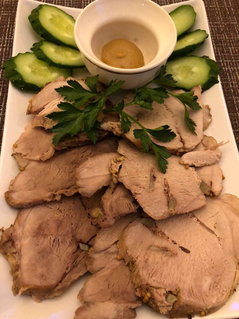 Часто готовлю буженину на праздники. Ингредиенты: Свинина , чеснока, Зернистая горчица , Соль, перец, кориандр, Соевый соус , Сладкий соус Способ приготовления: Мясо помыть и обсушить. Сделать в нем надрезы и нашпиговать порезанным чесночком. В чашке смешать соевый и сладкий соус, горчицу. Соль, перец, кориандр по своему вкусу. Смазываем мясо. И оставляем его мариноваться на 40 минут. Заворачиваем мясо в фольгу. И отправляем в духовку, разогретую до 180 градусов. Запекаем 1 час - 1 ч 15 мин. ориентируйтесь на вес мяса. По истечении этого времени достаём нашу буженину и оставляем на 10-15 мин в фольге. Мясо должно отдохнуть. За это время соки равномерно распределятся по всему куску. Даём остыть. Нарезаем тонко и подаём с зеленью, овощами, горчицей и хреном!