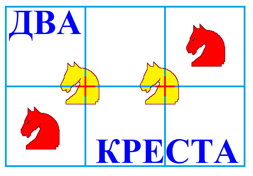Конь прыгает на крестик, на второй