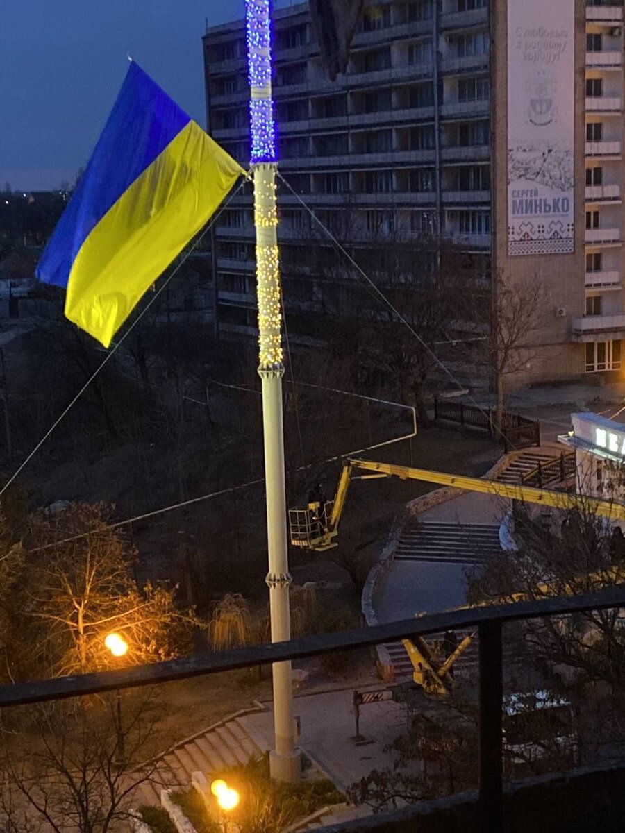 В центр города, к самому высокому 36-метровому флагштоку в Запорожской области подъехала специализированная техника. Мелитопольцы прощаются с символикой, под которой на протяжении 8 лет убивают жителей Донбасса, а теперь и других регионов постукраинского пространства. Работы по демонтажу проводят сотрудники департамента капитального строительства и ЖКХ Мелитополя. Помогают им в этом ополченцы из Донецкой Народной Республики.
