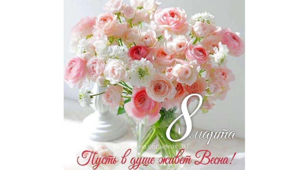 В этот светлый весенний праздник Хочется от всей души поздравить Вас С Международным женским днем! И пожелать самых важных и бесценных вещей: Здоровья, любви и простого человеческого счастья. Пусть дома всегда царит тепло и уют, Пусть близкие и родные всегда будут рядом, Пусть жизнь будет полна радости!