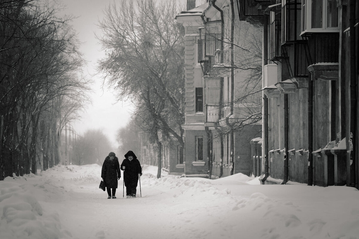 На вид ей было лет 80. Низкого роста, около 153. Но она не горбилась, просто с возрастом они все становятся такими маленькими, будто растут в другую сторону. На ногах — валенки. Такие, которые сейчас можно найти только в музее. Зато тепло. Под объемной меховой курткой темно-зеленого цвета, наверное, шерстяной свитер и белая майка. Такая застиранная, с желтыми полосками. Карманы на куртке большие, она там периодически грела руки, потому что вместо перчаток купила пачку гречки.