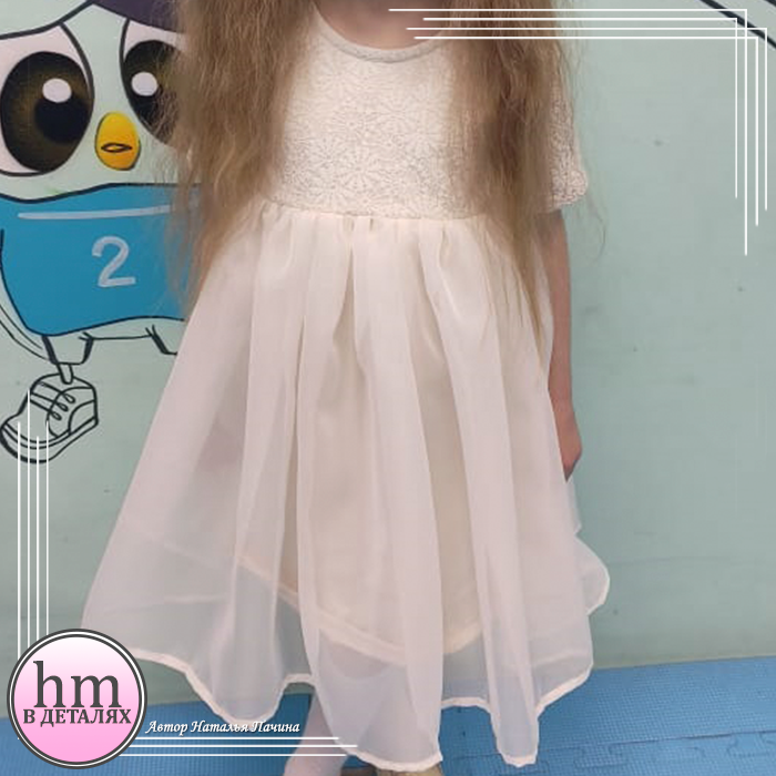 Всем привет! В связи с окончанием дочкой детского сада, я и все родители заказываем фотоальбом. Фотосессия состоялась 6 марта и к этому дню я сшила два наряда дочке по одной выкройке. Это был сарафан, который планируется носить в садик на повседневку и пышное платье к выпускному (если он состоится) Вот эти два наряда: Для пошива я взяла одну выкройку. Это платье А-силуэта с фестонами на полочке с сайта шкатулка. Я на основе этой выкройке шила платье ярусное без рукавов к новогоднему утреннику - платье Елочка. На рост 110 я взяла размер 116. Итак, первым я сшила сарафан Из изменений: 1. При сохранении длины изделия по выкройке, я разделила ее на 2 части - это основа верхняя и оборка высотой 15 см - 1/3 часть длины по боковому срезу (в раскрое 17, с учетом припусков). Длина детали оборки не просчитывалась с учетом коэффициента. Я просто отрезала полосу ткани по ширине полотна (150 см) 2. В зоне плечевых швов смоделировала застежку. По спинке удлинила на 5 см, по полочке укоротила на