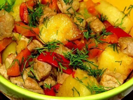 Картофель тушёный с овощами! состав; 1 кг очищенного картофеля, 3 луковицы, 1 стакан томатного сока ,1 сладкий перец ,1 морковь, подсолнечное масло, соль. способ приготовления; Картофель нарезать купно,положить в сковороду ,посолить,залить водой, чтобы она покрыла картофель.Поставить на огонь и тушить.Морковь и помидоры нарезать крупными фрагментами,лук и перец кольцами, овощи обжарить на масле ,добавить картофелю, перемешать и тушить до готовности. Приятного аппетита!