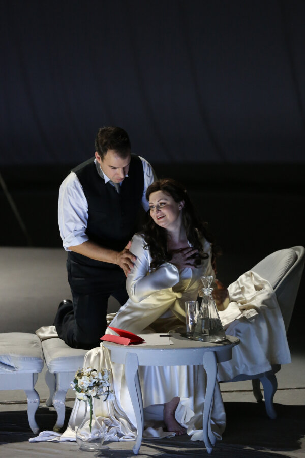 Привет всем! 6 марта, как раз перед женским праздником, я посетила в Фольксопере оперу "Травиата" с режиссурой и сценографией Ханса Гратцера под дирижерством Альфреда Эшве. Роль Виолетты Валери исполняла Ребекка Нельсен, Альфредо Жермон - Сабольч Брикнер, Джорджио Жермон, его отец - Мортен Фрэнк Ларсен. Постановка Ханса Гратцера рассказывает историю самой известной оперы в мире в мечтательных, поэтических образах. "Травиата" (La traviata - падшая, заблудшая) - знаменитая опера Джузеппе Верди на либретто Франческо Мария Пьяве по мотивам романа Александра Дюма-сына "Дама с камелиями" (1848). Как и в "Риголетто" и "Трубадуре", Верди в "Травиате" в центр драмы помещает персонажа, отвергнутого обществом. Премьера состоялась в 1853 г в театре Ла Фениче в Венеции и потерпела провал, однако, переработанная, вскоре стала одной из знаменитейших и популярнейших опер. Опера была написана по мотивам романа Александра Дюма-сына "Дама с камелиями", в основу которого были положены автобиографические з