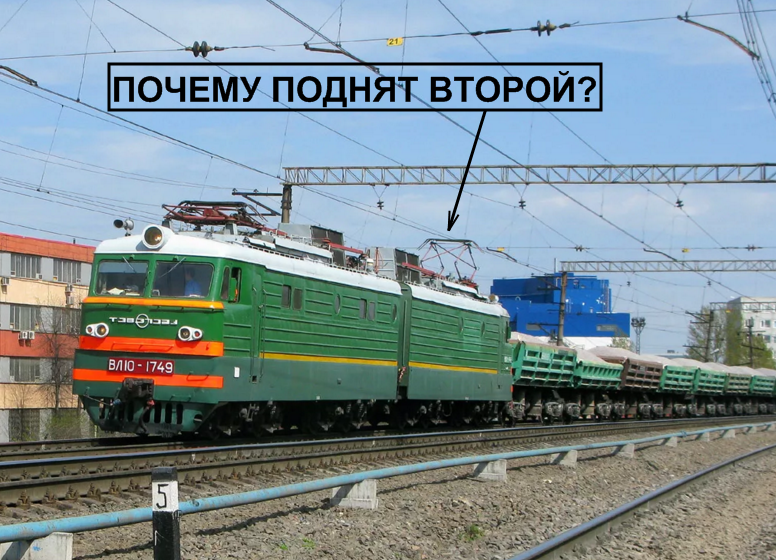 Если наблюдать за проезжающими мимо ж/д составами на электрифицированных участках пути, то можно заметить, что у электровозов поднят именно второй по ходу движения токоприёмник (пантограф), а не первый. Хотя обычно их два, и было бы неплохо поднимать оба. Причём это касается и товарных составов, и пассажирских. И это всё странно, ведь когда в работе два пантографа, то на каждый нагрузка уменьшается вдвое, и они дольше служат. А так получается, что последний работает, изнашивается, а первый как бы вообще непонятно зачем нужен.