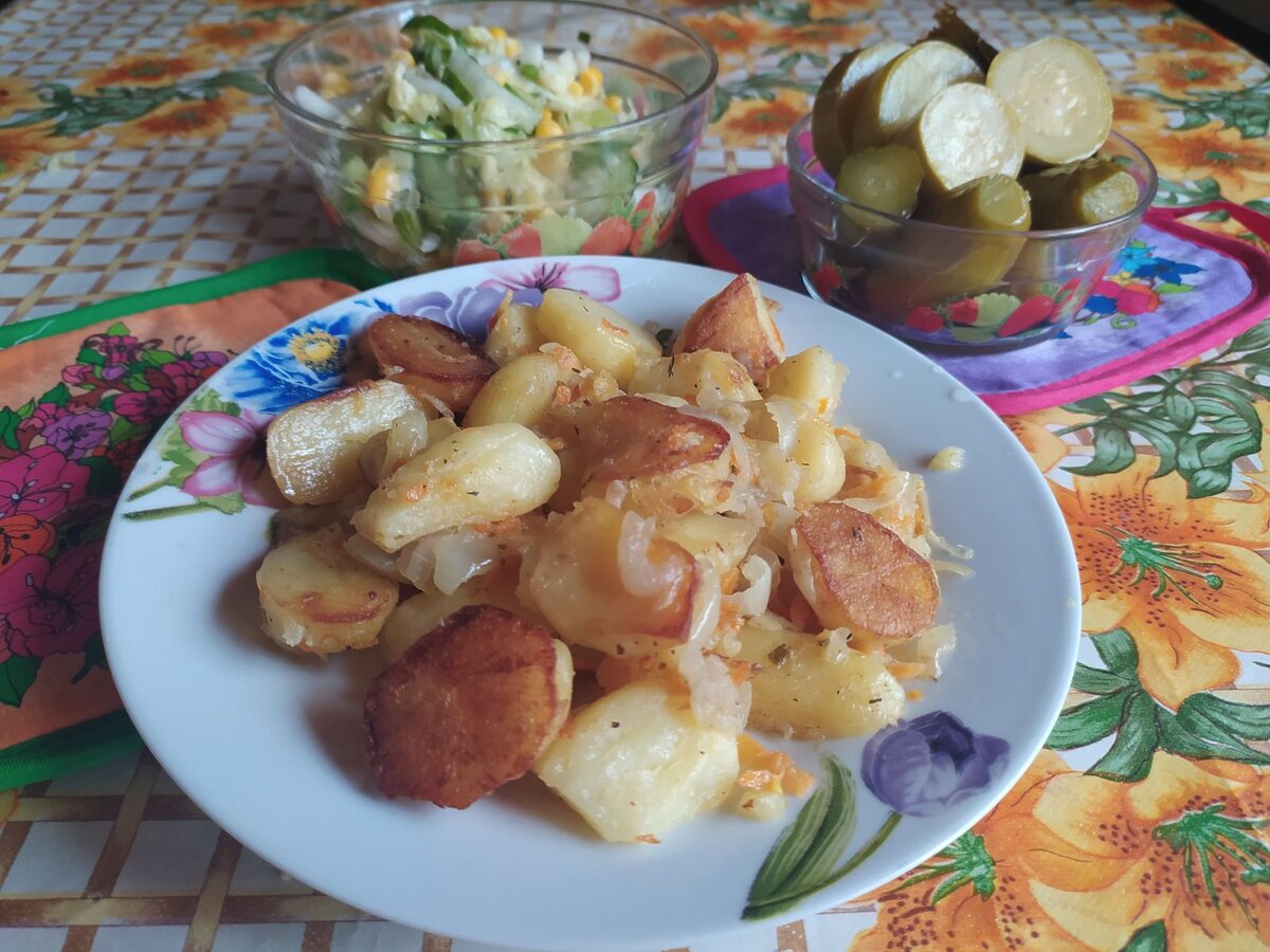 Блюдо очень простое, доступное, можно сказать, даже бюджетное. Несмотря на это, картофель, запеченный в духовке, никого не оставляет равнодушным. Правда-правда! Даже мой сын любит такую картошечку (уж он-то разборчив в еде, как никто другой). Количество ингредиентов – на свой вкус. Главное – картофель. Картофель очистить, нарезать кусочками, если мелкий, то можно оставить целиком. Выложить картофель на противень, хорошо смазанный растительным маслом, и поместить в духовку, разогретую до температуры 200 С. Лук и морковь очистить, лук нашинковать полукольцами, морковь натереть на крупной терке. Жаренный в духовке картофель вынуть, перевернуть. Такую процедуру проделать еще 2-3 раза. Когда картофель будет доведен до полуготовности, то добавить к нему морковь и лук, помешивая, прожарить до их мягкости. В конце приготовления посолить, поперчить, можно приправить любимыми специями, например, сушеными травами. Лучше всего подавать картофель горячим. На гарнир подойдет салат из свежих овощей,