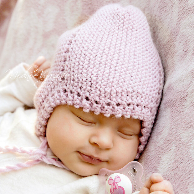 РАЗМЕРЫ Окружность головы: ок. 42 (44) 46 см ВАМ ПОТРЕБУЕТСЯ Пряжа (100% овечьей шерсти; 100 м/50 г) — 50 (100) 100 г, спицы №4 ПЛАТОЧНАЯ ВЯЗКА Лицевые и изнаночные ряды вязать лицевыми. КАЙМА С ПИКО НА 4 ПЕТЛЯХ 1 и 2-й р.: вязать платочной вязкой;