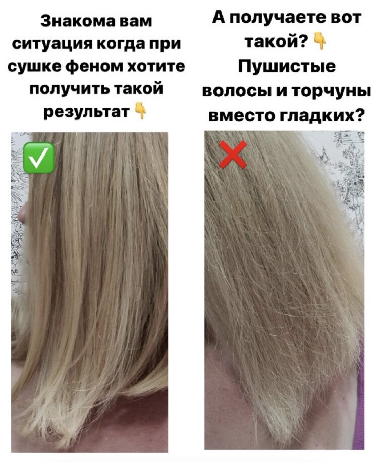 Разберу самые частые ошибки при сушке феном. Ошибка 1 ❌ Слишком рано начинать укладывать волосы, когда они ещё мокрые. ✅ Надо начинать укладывать волосы когда они уже почти сухие, где-то на 80%. Можно феном досушить до этого состояния, а можно походить и подождать пока подсохнут сами и приступать к укладке. Иначе увеличивается время укладки и воздействия температурой, что может привести к повреждению, а также так очень сложно досушить до нужного состояния, в итоге укладка будет пушистой. Ошибка 2 ❌ Укладывать в ванной с закрытой дверью, особенно сразу после душа когда комната еще влажная. ✅ Надо укладывать либо в большой сухой комнате, например спальне, либо если в ванной, то подождать пока она высохнет после мытья и делать это с открытой дверью. Знаете что происходит с волосами при высокой влажности? Они начинают пушится. Во влажной ванной или маленьком помещении где от сушки феном испаряемая влага с волос поднимет влажность воздуха помещения получить гладкие волосы без фриза не