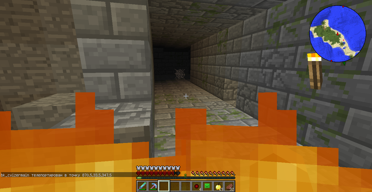 Я вернулся в крепость, ибо мне нужно было 2 алмаза для крафта красного алмаза, а там как раз были большие пещеры!