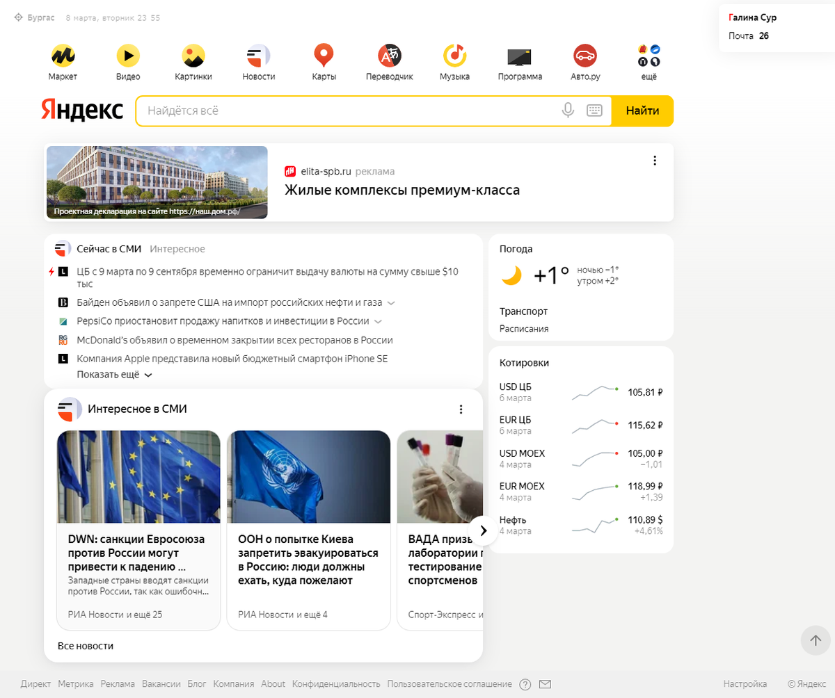 Моя Болгария: у меня пропал Яндекс.Дзен