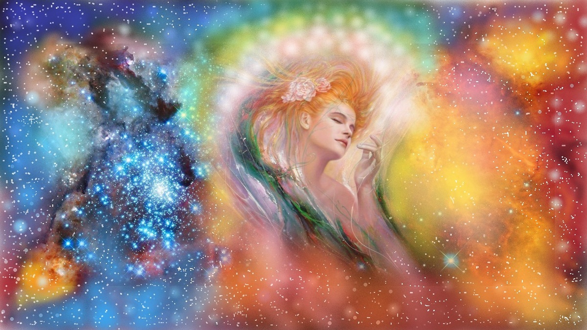 -- Кто ты? - "Я - Чувство, Я - Любовь! Ты видишь: Я в Короне Звездной!" - Зачем же Ты приходишь вновь тревожить мукой бесполезной? "Вернулась я из дальних стран; прими беглянку, как подругу". - Твои обеты - лишь обман, твои пути - пути по кругу. "Я - Тайна Духа! - Ты - Мечта, "Я - дрожь, - Ты только манишь дрожью! "Я - неизбежна!" - Есть черта, за ней Я властвую над ложью! " Ты снова мой!" - Свободен я! стих В.Я.Брюсова.