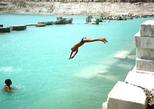 На склоне, рядом с карьером, бил небольшой родник. О нем, конечно же, никто не думал, когда речь шла о выполнении планов добычи. Так получилось, что, срезав очередной слой породы, было повреждено подземное русло родника, и оно изменило свое направление. Вода стала заполнять карьер. Но человек не отступал. Были установлены мощные насосы, которые откачивали воду быстрее, чем она прибывала, что позволило продолжить работу.