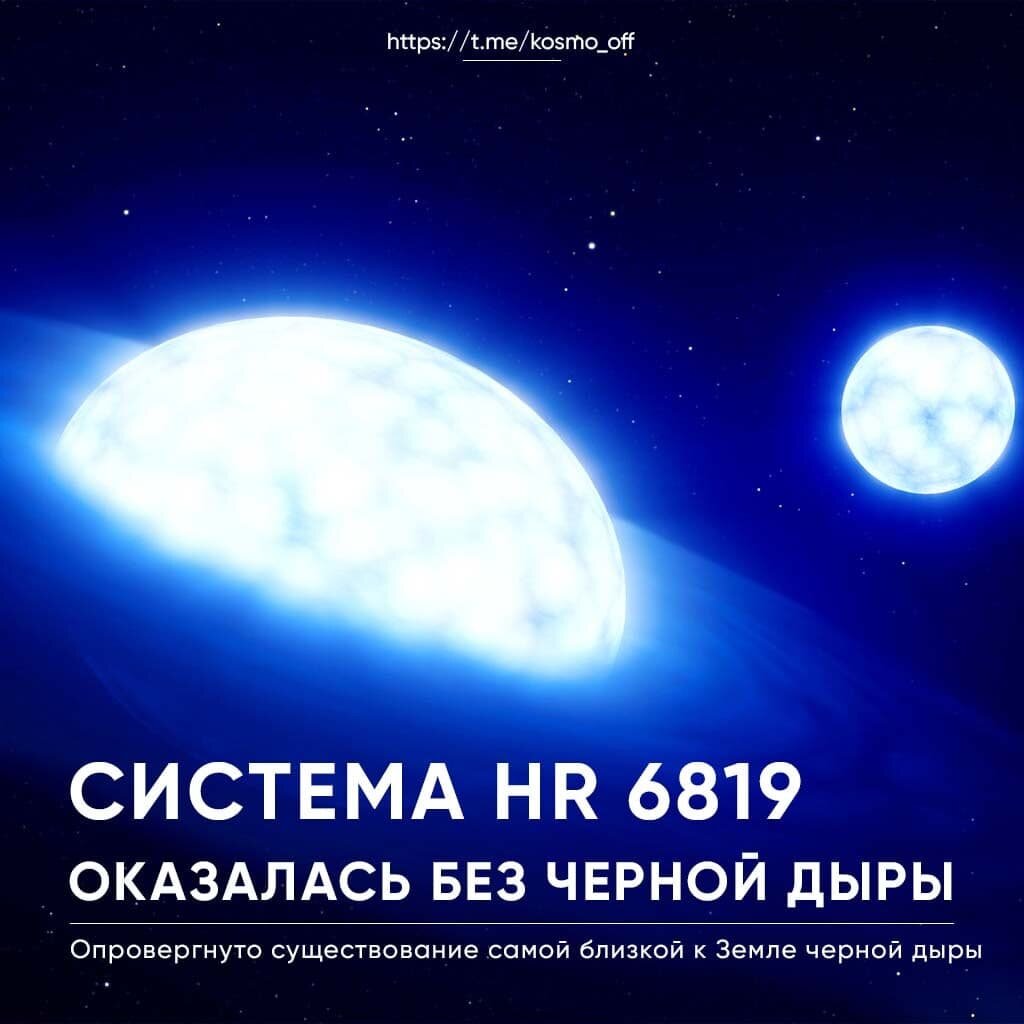 Астрономы Европейской южной обсерватории (ESO) сообщили, что ближайшая к Земле черная дыра в системе HR 6819, находящаяся на расстоянии около тысячи световых лет от планеты, на самом деле является не черной дырой, а двойной звездной системой. Изначально ученые основывались на данных наблюдения HR 6819 с использованием 2,2-метрового телескопа MPG/ESO и считали, что система представляет собой черную дыру, вокруг которой вращаются две звезды. Однако другая группа ученых предложила другое объяснение, согласно которому HR 6819 является системой из двух звезд, которые вращаются вокруг друг друга, совершая один оборот за 40 дней. Астрономы провели новые наблюдения с помощью Very Large Telescope и его интерферометра. Они сумели различить два ярких источника света, которые удалены друг от друга всего на треть расстояния между Солнцем и Землей. Это позволило ученым сделать вывод, что черной дыры в HR 6819 на самом деле не существует. Еще больше интересной информации вы можете найти в нашем косми
