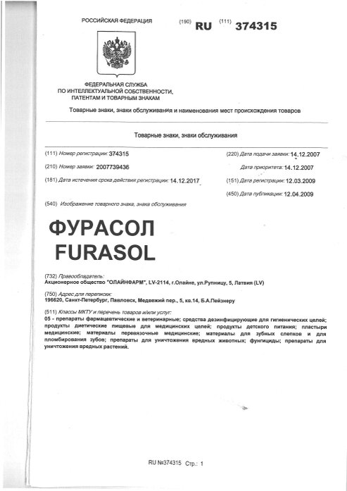 Подтверждающие документы Фурасол