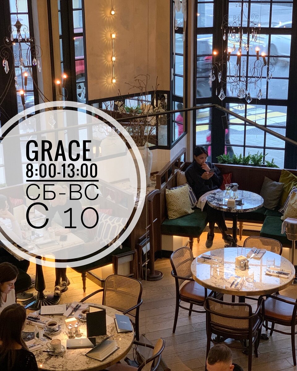 Грейс @grace.bistro невероятно обворожительная француженка, напомнила @gretel_msk (которая ушла обновляться и пока закрыта), но чуть старше, статуснее. Когда девичий распахнутый взгляд сменился на глубокий с поволокой. Еще у нее одни из самых красивейших окон, небольшой зал, где почти каждый столик удачен для завтрака: в нише у окна или чуть дальше, чтобы любоваться исполинскими размерами рам. Все дышит элегантностью, включая внешний вид официантов в белых рубашках. Из интересного: 🦀 Краб-кейк с яйцом пашот - 790р 🥔 Картофельный гратен с яйцом пашот, 🥑 и пряной сметаной - 540р 🥪 Сендвич со сладкой говядиной и миндальным песто - 1450р На фото меню не вошли: Бенедикт с лососем или 🥓(820/600р), 🥑 -тост с лососем (730р), сендвич с мортаделлой и рукколой (580р) и немного выпечки. Мы попали в масленичную неделю, и захватили блинчики с фуагра и соусом из сморчков. Каак же это вкусно 🤤 Вообще абсолютно все, что мы заказали было приготовлено идеально. Единственный минус - ждали мы долг
