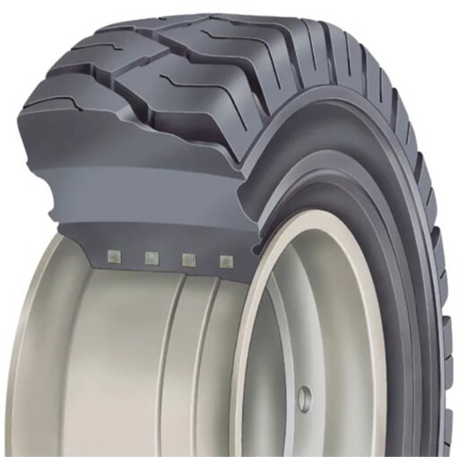 Некоторые виды спецтехники работают в таких условиях, где эксплуатация пневматических шин, внутренний объем таких шин заполнен воздухом, крайне затруднительна. Чтобы сократить издержки и увеличить эффективность, на технику ставят так называемые цельнолитые шины, они более устойчивы к механическим повреждениям. Цельнолитые шины еще иногда называют – гумастик, в честь их изобретателя, химика из Санкт-Петербурга А. Гусса, так же встречается название – суперэластик. Устройство цельнолитой шины напоминает «пирог», состоящий из трех слоев Основная отличительная особенность таких шин состоит в том, что внутреннее пространство таких шин наполнен не воздухом, а резиной, разработанной на основе синтетического каучука. Верхний, протекторный слой выполнен из специальной резиносмеси с значительным добавлением натурального каучука. Резиносмесь обладает высокой износостойкостью и крайне устойчива к боковым порезам и отслаиванию. Внутренний эластичный (демфирующий) слой выполнен из высокоэластичной ре