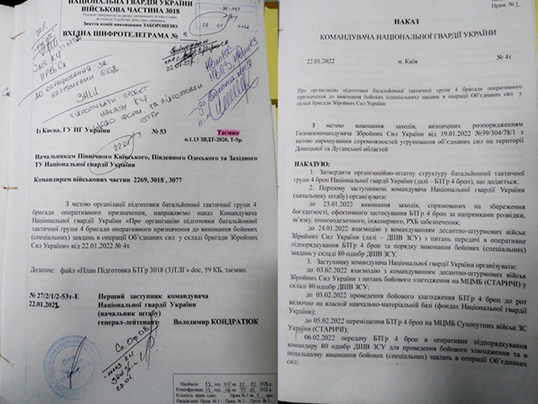 В ходе проведения специальной военной операции в распоряжение российских военнослужащих попали секретные документы командования нацгвардии Украины. Эти документы подтверждают скрытую подготовку киевским режимом наступательной операции на Донбассе в марте 2022 года. С подобным заявлением выступил официальный представитель оборонного ведомства генерал-майор Игорь Конашенков. Вот читаешь такой украинский «наказ» и недоумение только – А какая вообще может быть языковая проблема на Украине? Все ж понятно. Командир велел образовать батальонную группу, разместить ее в с. Старичи Львовской области. Придать ей боевую технику, санитарные автомобили. Бойцов привить от ковида, выдать им подштанники и агитационные материалы. Таких приказов на сайте украинской нацгвардии сотни висят. Более того, таких приказов и российское минобороны штампует по сорок штук в месяц. Самая сенсация, конечно, это то, что такая бумажка «неопровержимо свидетельствует о подготовке к вторжению украинской армии в Донецкую