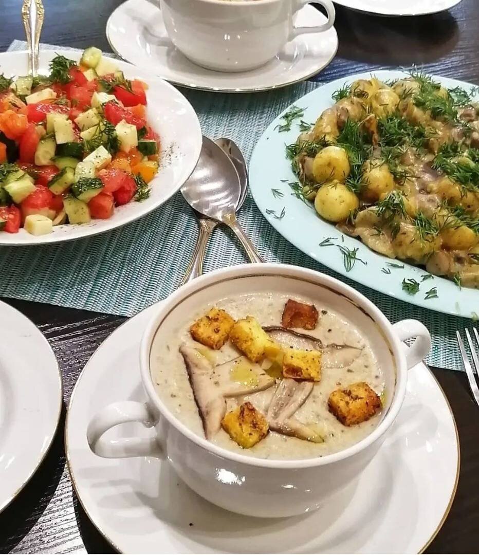 Теплый и душевный крем-суп с белыми грибами. Ингредиенты: Белые грибы и 1 для украшения, Картофель, Сливок 20%, Соль, перец , мускатного ореха, лук репчатый, лавровый лист, перец душистый Способ приготовления: Грибы моем, чистим и заливаем водой, варим на медленном огне 30 мин. с добавлением соли, 1 луковицы и пряностей, в конце варки их надо убрать. (Первую воду после закипания я всегда сливаю) Картофель чистим и нарезаем произвольно, отправляем к грибам, солим и перчим по вкусу, варим ещё 20 мин. Воды должно быть немного, чтобы суп получился именно кремовым, я отливаю большую часть бульона и регулирую густоту. После окончания варки, все перебивает блендером до однородной массы, вливаю сливки и ещё раз пробую, выправляю на соль и перец, и если надо добавляю заранее отлитый бульон до получения желаемой консистенции. Прогреваю но не кипячу. Крем-суп готов. Для украшения можно взять один самый красивый грибочек и нарезать его на тонкие ломтики, обжарить до румяности, украсить суп в порци