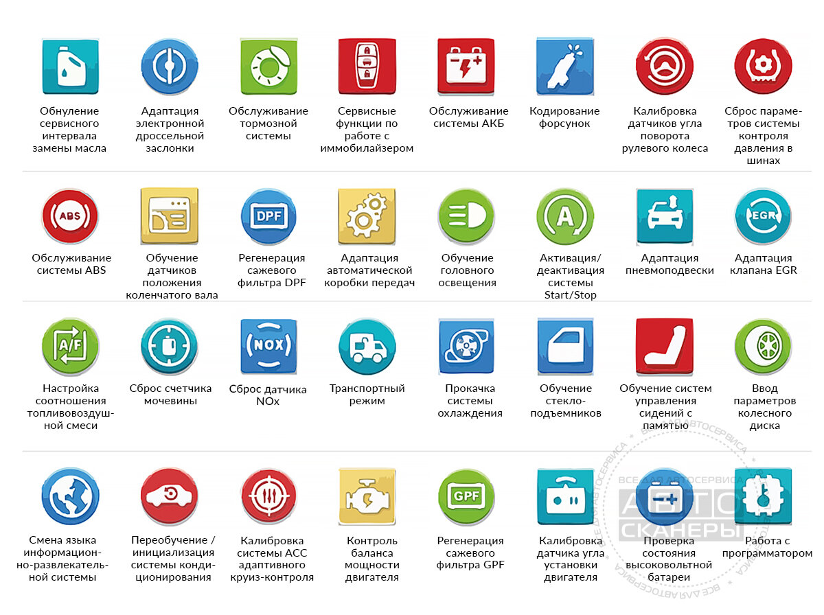 Рассмотрим отдельные типы специальных функций, выделенных в X-431PRO, каждая из которых является частным случаем адаптации, базовых установок или кодирования.