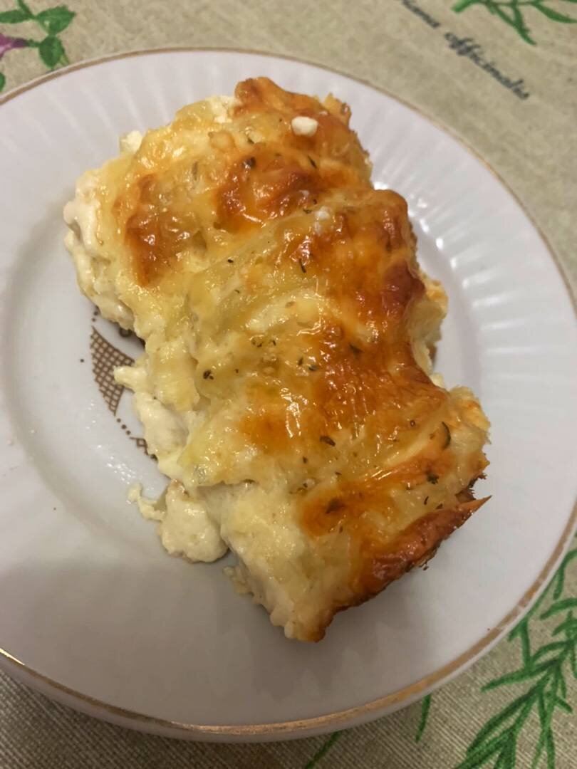 #8марта Ингредиенты: картофеля, луковица, чеснока, сливочного масла, муки, молока, сливок, сыра, тимьяна, соль, перец Способ приготовления: Картошку нарезать на тонкие кружочки. Лук нарезать кубиком, чеснок натереть. На оливковом масле слегка обжариваем лук, затем добавляем чеснок, через пару минут сливочное масло. Насыпаем муку и понемногу заливаем сливки и молоко, постоянно помешивая. Солим, перчим, добавляем тимьян и доводим до загустения. В форму выкладываем картофель вертикально, солим, заливаем соусом и посыпаем сыром. Запекаем при 180 градусах до образования золотистой корочки.