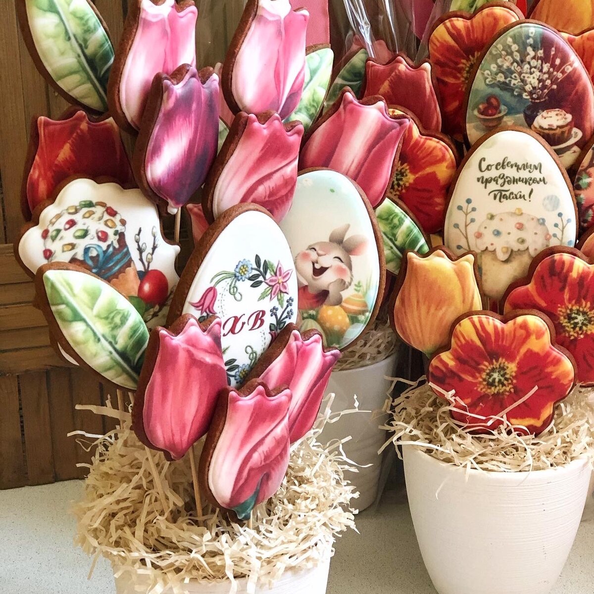 Светлый Праздник Пасхи - очень радостный, светлый и, возможно, самый важный Праздник. Праздник Воскресения Христова. Наша пекарня очень внимательно относится к подаркам на Пасху, и предлагает к вниманию наборы из имбирных пряников, имбирные пряники в индивидуальной упаковке и букеты из имбирных пряников. Каждую работу мы делаем очень внимательно, ценим каждого клиента и каждый отзыв. Пряники выполнены по авторскому рецепту на основе самых качественных продуктов, натуральных и проверенных многолетним опытом работы и экспериментов. Особы акцент при приготовлении пряника мы уделяем вкусовым и текстурным качествам пряника, то есть мягкости и структуре теста. При этом также особое внимание придается сохранности вкусовых и текстурных качеств в течение времени. Так, благодаря специальному рецепту и упаковке, пряники сохраняют вкусовые качества, аромат, а также мягкость в течение очень длительного времени. Официальный срок годности 1 месяц с даты изготовления. Мы очень надеемся, что имбир