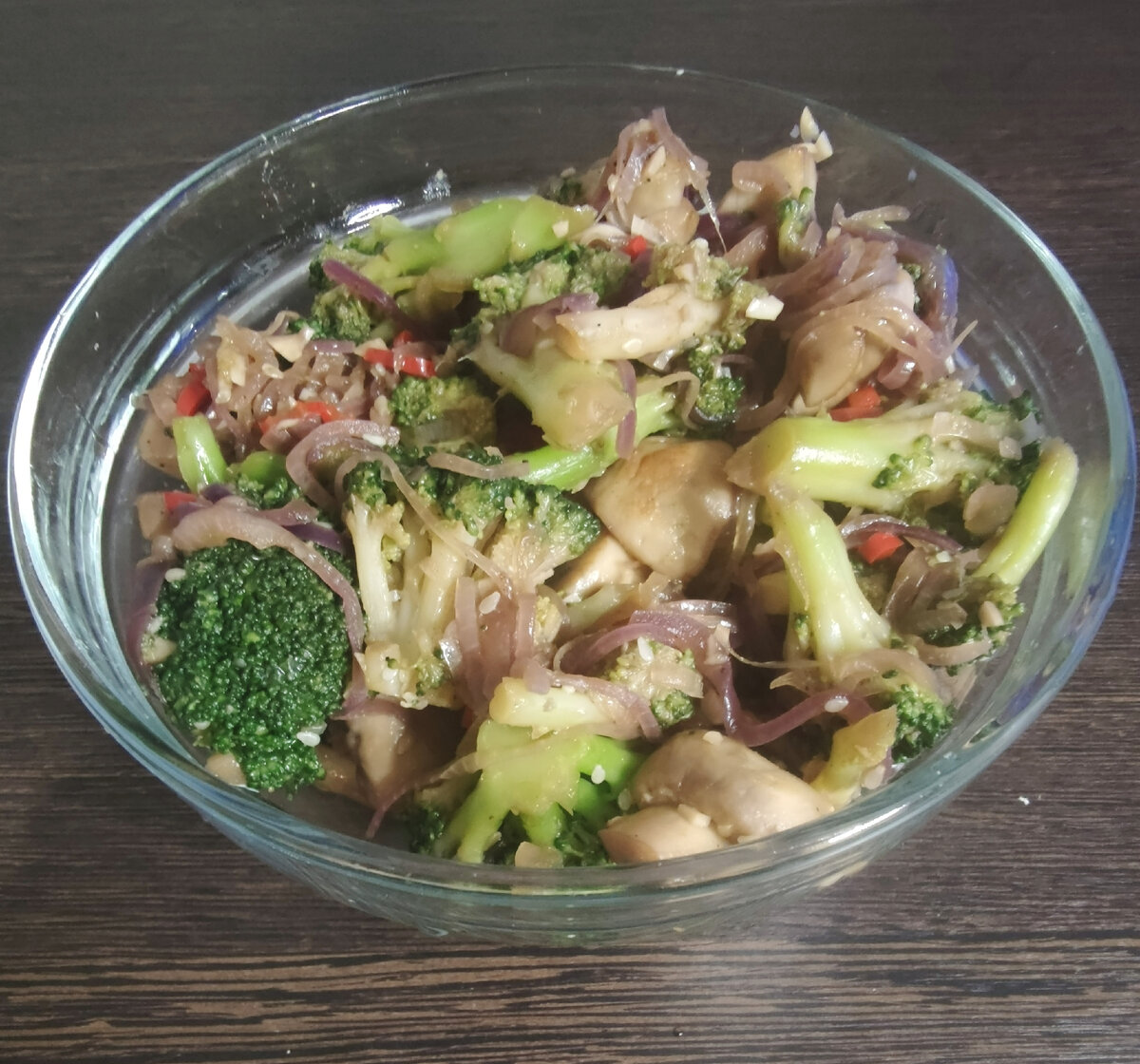Лёгкий салат с брокколи и грибами. Просто и очень вкусно.