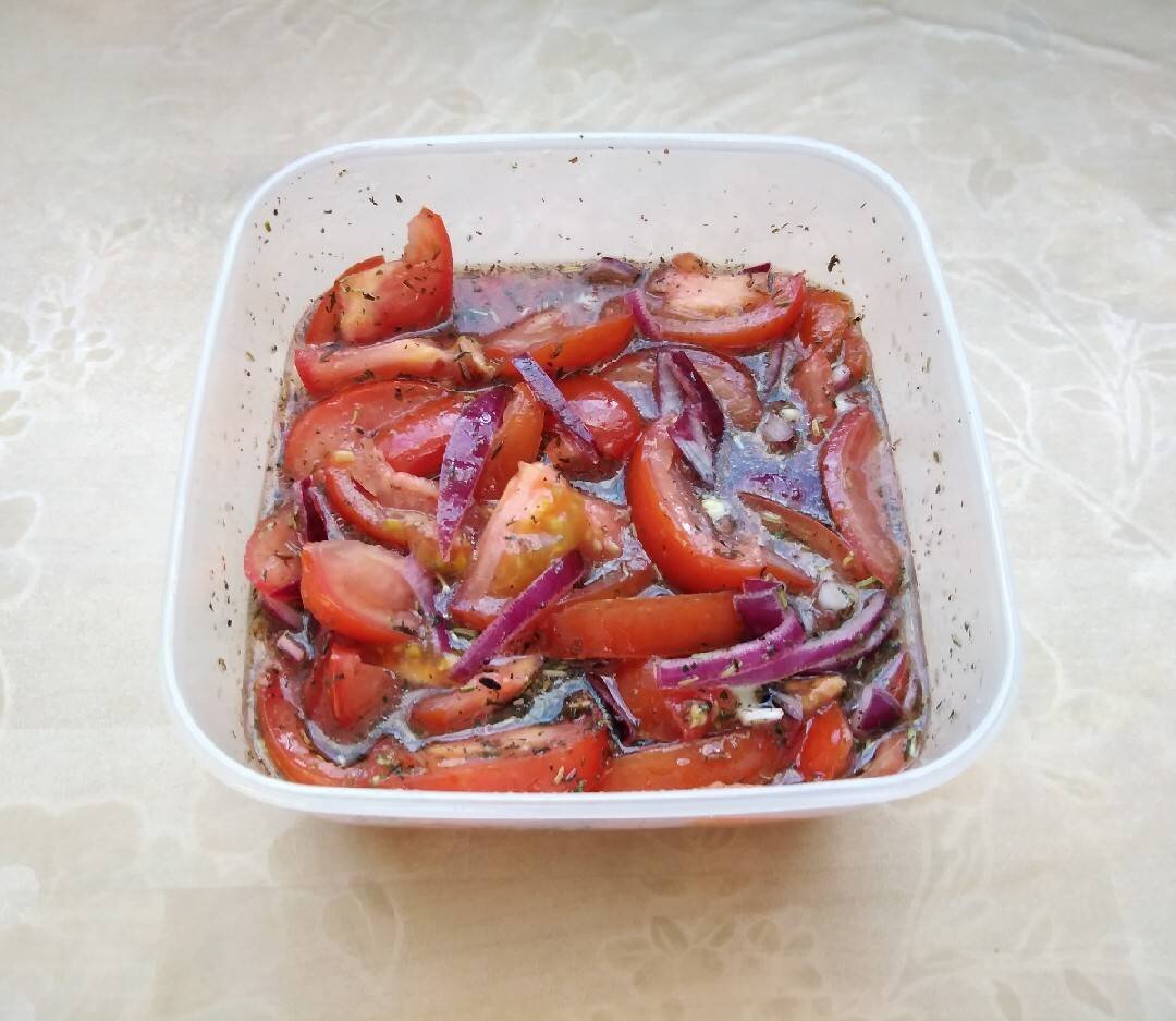 Это очень вкусный салат с помидорами, красным луком, специями и медом. #салаты #закуски #помидоры #пп #вегетарианство #веган #веганство #шашлык #лук Ингредиенты: гр Помидоры, Красный лук, Чеснок, Заправка, растительного масла, меда, лимонного сока, соли, Красный острый молотый перец, Черный молотый перец из мельницы, Кумин (зира), базилика или пряных трав Способ приготовления: Помидоры вымыть, порезать на кусочки. Можно взять черри и порезать пополам, чтобы они дали сок. У меня томаты маленькая слива. Порезать красный лук полукольцами, если кусочки будут большие, то их нужно разрезать ещё пополам. Можно добавить чеснок, я его не клала. К помидорам и красному луку добавить специи : мед, растительное масло, соль, лимонный сок, немного красного острого перца, молотого черного перца из мельницы, он даст дополнительный аромат, базилик или сушеные травы, у меня французские и по желанию кумин (зиру). У меня помидоров было больше 300 грамм, поэтому и специй я добавила больше. Перемешать, можно