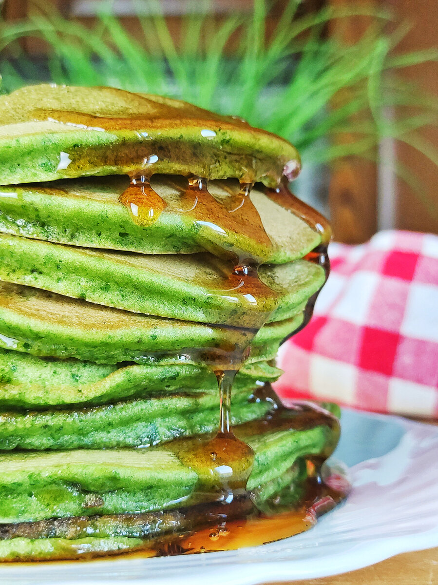 Ингредиенты: 125 гр банан 110 гр мука 50 гр шпинат 3 яйца 15 гр сахар 5 гр разрыхлитель соль растительное масло для жарки Приготовление: Измельчите с помощью блендера шпинат и яйца; добавьте бананы и снова прокрутите до однородной консистенции. Добавьте соль, сахар, муку, разрыхлитель - снова прокрутите, можно муку добавлять в 2-3 приема. Оставьте тесто на минут 10. Жарьте панкейки на сковороде с небольшим количеством масла и на невысоком огне. Старайтесь жарить деликатно, чтобы сохранить более менее зеленый цвет панкейков. Подавайте панкейки с медом, сметаной, йогуртом, кленовым сиропом, ягодами, и всем тем, что вы любите.