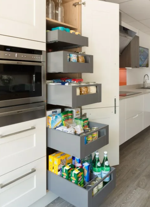 Высокие шкафчики включают в себя кухонную технику и компактные и организованные решения для хранения вещей. Три яруса полностью съемных, нажимных и мягко закрывающихся внутренних выдвижных ящиков обеспечивают идеальное решение для труднодоступной зоны под духовкой. Параллельная кухня, гостиная и столовая имеют общую открытую и просторную зону, что облегчает общение и передвижение между комнатами. Большая застекленная раздвижная дверь отделяет кухню при необходимости, не теряя яркости или визуальной связи. Гостиная соединяется с садом и горизонтом за ним с помощью аналогичного решения, поэтому, когда обе перегородки открыты, атмосфера, момент и естественный свет достигают кухни. Дом, расположенный в сельской местности, служит хорошим примером правильного баланса между различными стилями и материалами. Расположение кухонных шкафов в две параллельные линии благоприятствует входу естественного света и гарантирует, что все находится в пределах легкой досягаемости при приготовлении пищи.