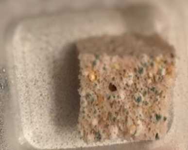 Для проведения исследования был взят обычный белый хлеб без добавок, от которого был отрезан кубик мякиша, и был положен в пластиковую емкость. Емкость с кубиком мякиша находилась в помещении с температурой от +25°до +30°.