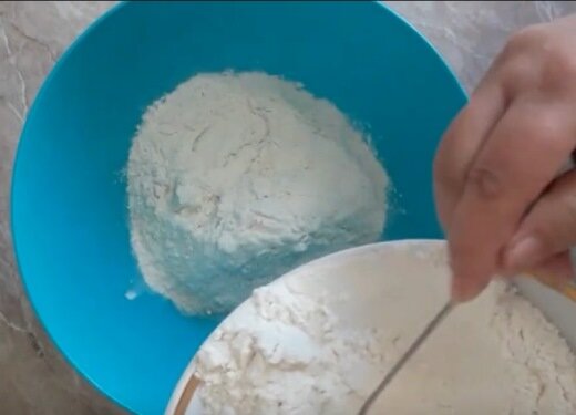 Мясные пироги любят многие. Плюсом моего рецепта является тесто. Оно слоеное, и приготовлено своими руками, а не куплено в магазине. Начинка получается сочной и вкусной, хотя ничего особенного в ней нет. Гости всегда спрашивают рецепт этого отличного мясного пирога. Вам понадобится 400-450 граммов муки. 250 граммов сливочного масла, слегка подмороженного в морозилке, натрите на крупной терке. Руки присыпьте мукой и перемешайте масло с мукой. Получится вот такая масса. Посолите (у меня 0,5 чайной ложки соли). 250 мл кефира перемешайте с 1 чайной ложкой соды и добавьте к муке с маслом. Перемешайте сначала ложкой, а потом руками. Получается вот такое тесто. Положите его в целлофановый пакет и уберите в морозилку на час. Нарежьте мелким кубиком 500 граммов репчатого лука. Также нарежьте 700 граммов сырого картофеля и 700 граммов мяса. В чаше посолите по вкусу лук, добавьте к нему картофель и мясо. Добавьте перец по вкусу и 50 мл воды. Перемешайте. Тесто разделите на две части: побольше и п