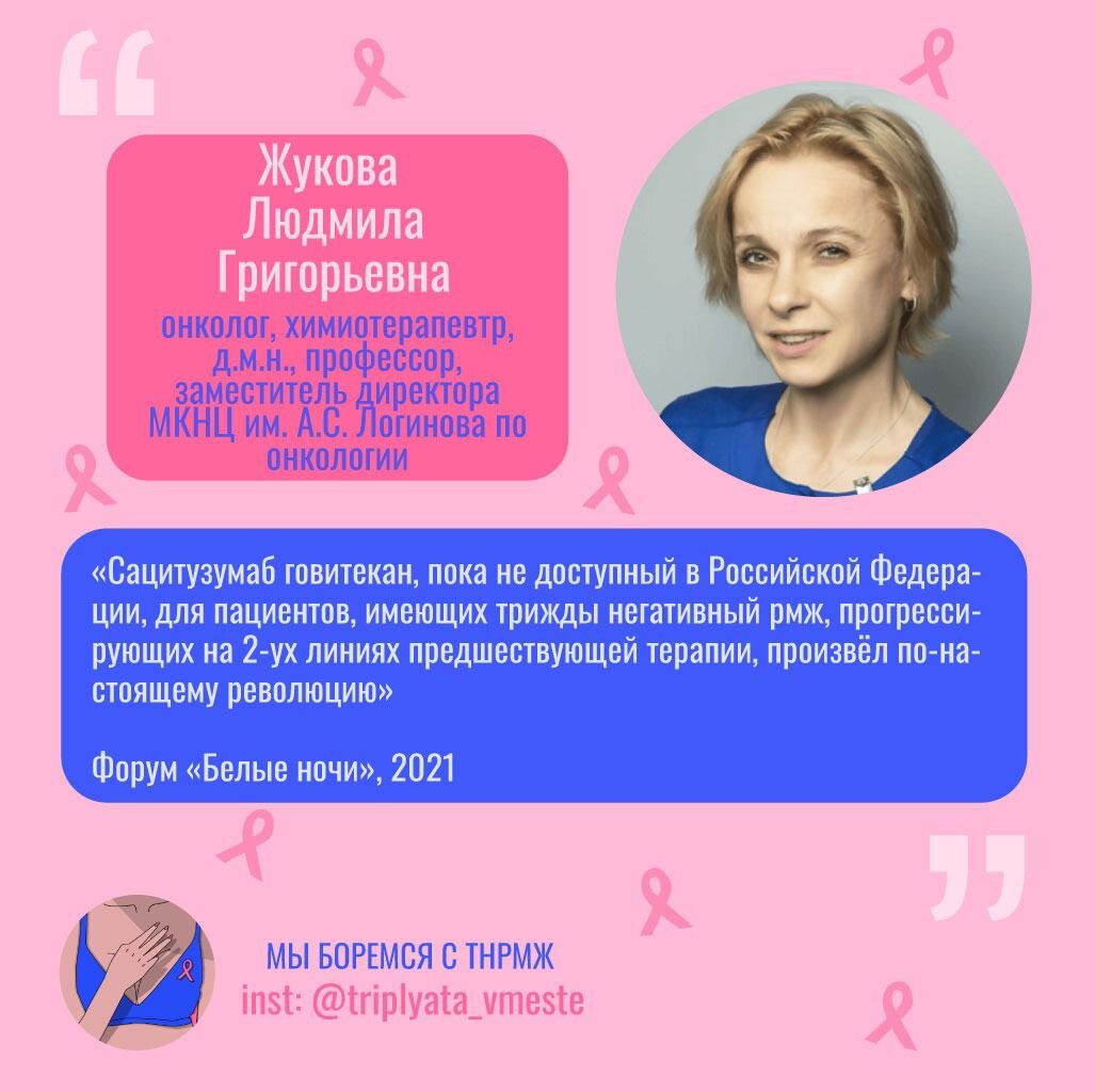 Экспертное мнение наших дорогих врачей, онкологов, химиотерапевтов - для нас самое главное. Вот, что говорит про сацитузумаб говитекан Людмила Григорьевна ❤️ ✔️Жукова Людмила Григорьевна, Заместитель директора МКНЦ им. А.С. Логинова по онкологии . «Сацитузумаб говитекан, пока не доступный в Российской Федерации, для пациентов, имеющих трижды негативный рмж, прогрессирующих на 2-ух линиях предшествующей терапии, произвёл по-настоящему революцию» . Форум «Белые ночи», 2021 . Пожалуйста, подпишите петицию, дайте нам в запас ещё один ОЧЕНЬ эффективный препарат для метастатического трижды негативного рака молочной железы . 👇👇👇 https://www.change.org/Trodelvy_Russia 👆👆👆 Ваши триплята ❤️ #триждынегативный #трипл #тнрмж #ракмолочнойжелезы #ракгруди #онкология #рак #говитекан #троделви #жуковалюдмилагригорьевна