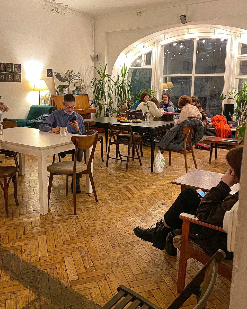 Место для творческих, любящих уют, чай и кофе с печенькой. Для встречи с близкими по духу под приятную музыку и настольные игры, которых целый шкаф. А шкаф какой в коридоре, полный часиков разных времен. И все можно посмотреть и даже в руках покрутить. Иногда проводится киноклуб с интересной подборкой фильмов, часто малоизвестных. После просмотра обсуждение увиденного и мысли вслух. 📍Адрес оставляю: