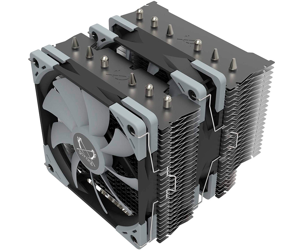 Японская компания Scythe рапортует о поступлении в продажу обновленной версии процессорного кулера Fuma 2 – Fuma 2 Rev.B (SCFM-2100). Относительно оригинала, побывавшего у нас на Тест’О’Дроме, изменения произошли небольшие – добавилась поддержка сокета LGA1700. Да, полгода спустя после выхода новой платформы Intel, такой вот у Scythe пинг. Так сказать «новинка» представляет собой двухсекционную башню на шести тепловых трубках диаметром 6 мм. Габариты кулера вместе с пропеллерами равны 155 х 129 х 137 мм (В х Г х Ш), а масса аккурат 1 кг. В основании медная никелированная пластина. Как и у оригинала радиаторный стек продувается парой 120-мм пропеллеров серии Kaze Flex на гидродинамических подшипниках с разнонаправленным вращением. Для обеспечения совместимости с оперативной памятью фронтальный «карлсон» тонкопрофильный (15 мм). Производитель обещает уровень шума не более 28,6 дБА и способность рассеять 150 Вт тепла. О цене Scythe Fuma 2 Rev.B данных нет, но судя по отсутствию серьёзных