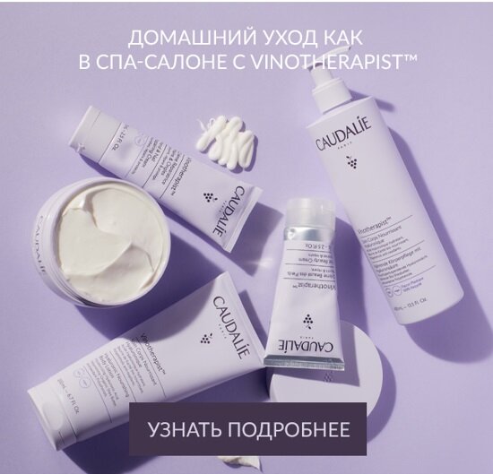 В 1999 году специалисты бренда Caudalie создали первый спа-центр Vinothérapie™ в Бордо. В необыкновенном месте среди виноградников винотерапевты предлагают процедуры, основанные на более чем 20-летнем опыте и мастерстве, не имеющие аналогов в мире. Ритуалы, дарящие чувственное наслаждение, с использованием экологичных и высокоэффективных средств. Именно на основе профессиональных спа-ритуалов и возникла серия Vinotherapist™: первых экологичных и профессиональных средств Caudalie по уходу за телом. Итак, представляем вам новинки от CAUDALIE - серия ухода за телом VINOTHERAPIST Бальзам для тела на растительной основе CAUDALIE VINOTHERAPIST BODY BUTTER Бальзам предотвращает шелушение, интенсивно питает и восстанавливает баланс сухой кожи на протяжении 24 часов. Насыщенная и шелковистая текстура крема, которая содержит липиды растительного происхождения, устраняет зуд и покраснения, убирает чувство стянутости. • Масло баланитеса египетского,100% натурального происхождения, укрепляет кожны