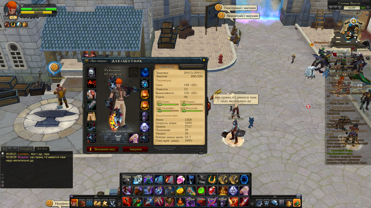 И так в прошлой статье я рассказал вам какие лучше всего таланты для прокачки разбойника, но не рассказал про параметры, время пришло). 1) 1-20 качаете всё в силу, особо жизни или же удачи вам не понадобится. 2) 20-40, стараетесь распределить между выносливостью и удачей, для чего мы качаем удачу и выносливость, а не ловкость и удачу. Всё очень легко и просто в начале вашего пути ловкость вам практически не будет давать уворота и монстры по вам как попадали так и будут попадать дальше, плюс не забывайте шмота у вас особо хорошего не будет минимум до 49 уровня. Потому мучиться без хп не стоит, потратите только больше нервов. 3) 40-49, качаем силу до кратности, остальное распределяем между удачей и выносливостью, кому что предпочтительнее. На 49 уровне стараемся найти на рынке уже хорошо заточенный шмот от +7 и выше и покупаем если он не дорогой с данным шмотом можно смело и спокойно докачаться до 65, не тратя денег на 60 уровень шмота. По своему опыту скажу, что на 49 уровне одевшись в