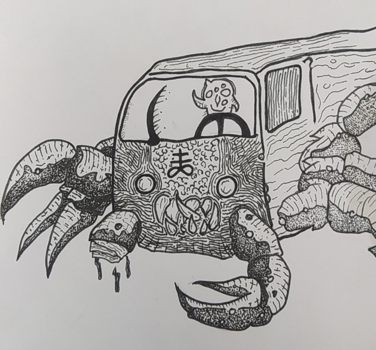 Черновик, начало положено. Иллюстрации будут доработаны, текст тоже. Буду рад критики и недовольству. В далёком крае на нижней полке, ехал мальчик. Ехал далеко от дома и не близко от конца, вечно посередине. В голове стучали рельсы, в голове стучали колёса. Всему приходит конец, и этот путь не исключение. В раннее время он стоял возле дверей. Он как всегда волновался на новом месте. Смена деятельности, людей, рабочего места. В целом всё как у людей. Дверь открыли и первая мысль разочаровала мальчика: это что, офис? Конечно это был офис, первая стадия погружения в любую пучину были бумаги с местом под кровавое пятнышко. В сторону мальчика смотрели три головы, с шеями, телами, руками, ногами. В целом всё как у людей. Договор был обычен, все пункты знакомы, но страх быть обманутым заставлял читать всё. Жизнь научила мальчика читать договоры, эти заклинания, от которых зависило ближайшее будущее. Обманутым хотелось стать умнее. Ритуал самоличного приношения себя на алтаре заве