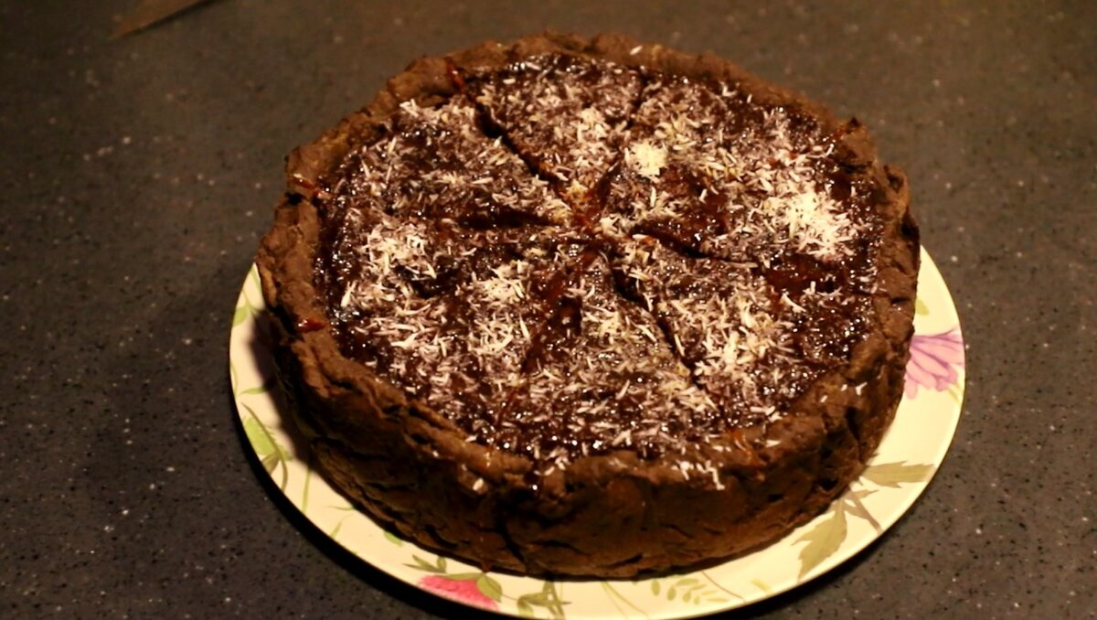 Ингредиенты: Д/коржа: мука бурого риса, полбяная и чиа; кэроб, масло (кокосовое/топлёное-Гхи/сливочное), сахар (кокосовый/тростниковый/сироп топинамбура и т.п.), розовая соль и сода (натурального происхождения). Д/начинки: Сливы и яблоки (мороженые), сахар, корица молотая (не кассия), ванилин. КОРЖ: - Форму для выпечки застилаем пергаментом. - Корж будет около 2 см высотой и с высокими бортами. - Берем приблизительно по 200 гр полбяной и рисовой муки. - Мука чиа - около 3 ст.л./ по желанию. Чиа заменяет яйца. - Кэроб- или плоды рожкового дерева – это более здоровая альтернатива какао. Добавляем его по желанию и в произвольном количестве. - Немного соли и сахара. - Соду насыпем около 2/3 ч.л. - Масло добавляем сколько пожелаем. Чем больше масла возьмём, тем более песочное тесто получится, при этом муку чиа можно будет не добавлять вовсе. *Соду гасим так: Насыпаем все сухие ингредиенты, и гасим её кипятком 60° и более. - Остальную Воду вливаем постепенно, помешивая, до получ
