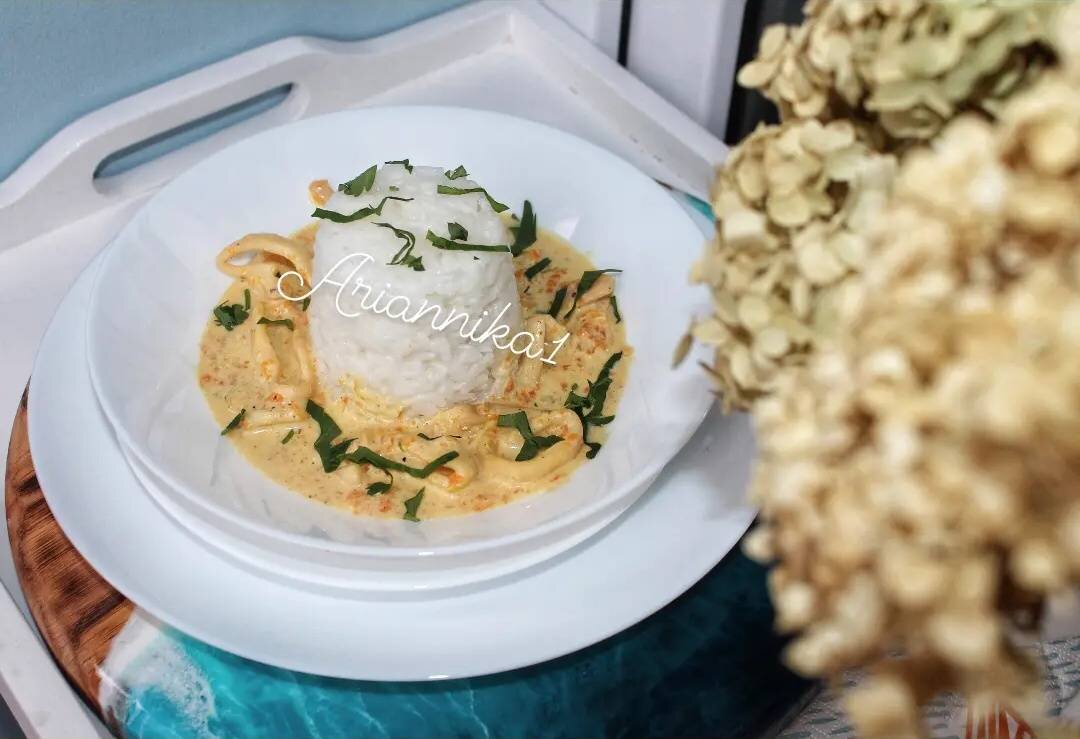 Рыбному четвергу - морской обед или ужин! РИС С КАЛЬМАРАМИ В СЛИВОЧНОМ СОУСЕ - радую себя и родных вкусной едой. Когда нет сил и желания стоять долго у плиты. Это блюдо можно подать, как самостоятельное, например, со свежеиспеченным хлебом или подать в качестве гарнира к нему рис, картофельное пюре, тогда будет уже максимально полноценный ужин. Итак, от слов перейдём к делу... #рецептбодрости Ингредиенты: кальмаров, моркови, луковица, сливок 20%, соль, перец , зелень для украшения Способ приготовления: 2 достаточно крупные морковки натираем на тёрке (крупной или мелкой - это дело вкуса). Мелко нарезаем 1 луковицу (у меня стабильная замена на лук-порей). Тонкой полоской нарезаем 400 гр очищенного кальмара. На растительном масле обжариваем лук до прозрачности. Затем добавляем морковь и обжариваем до появления вкусного запаха (около 10 минут). В конце добавляем кольца кальмара и обжариваем около 2 минут. Вливаем 150-200 мл сливок (20%). Посолить, поперчить и тушить около 15 минут на слабо