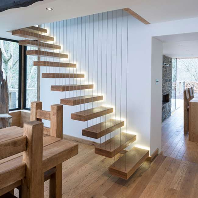 Наверное, самый популярный, и оптимальный по соотношению цены и качества, материал для изготовления лестниц. Кроме того, с учетом конструкционных особенностей некоторых домов единственный из возможных.