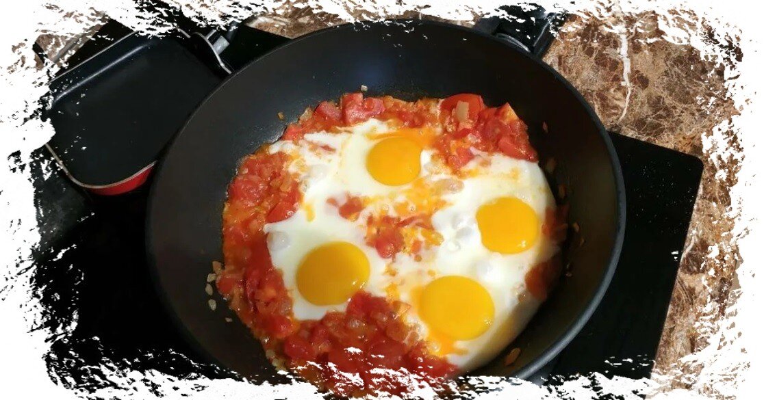 В нагретое блюдо выложить фаршированные куски яичницы, на каждый кусок положить по половинке помидора, посыпать зеленью петрушки или натертым сыром, полить растопленным маслом.