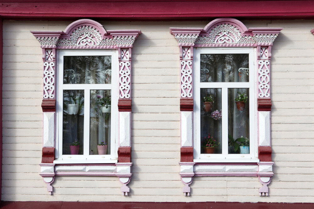 У наличников две функции — украшать окна и закрывать стык окна и стены дома. Выглядят они по-разному: яркие краски и голое дерево, национальные узоры и европейские стили. Где-то богато декорируют боковинки, а где-то — «юбку», нижнюю часть.